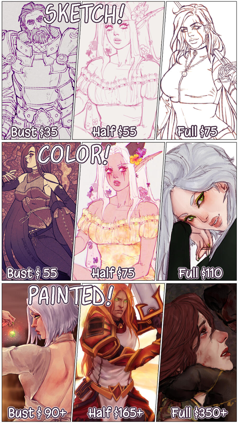 -Design work will be subject to a higher price.Commissions are for personal, non-commercial use only! NO NFT/Crypto/AI★I reserve the right to decline commissions I am uncomfortable with, for any reason.⬇ Scroll down for more examples.